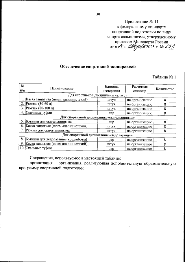 ПРИКАЗ Минспорта РФ от 14.08.2025 N 653