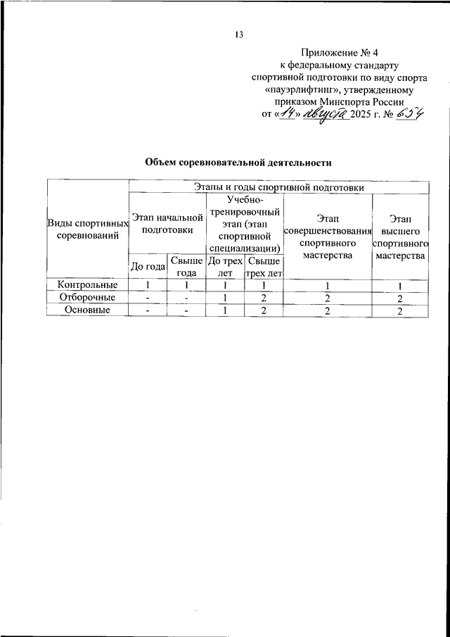 ПРИКАЗ Минспорта РФ от 14.08.2025 N 654