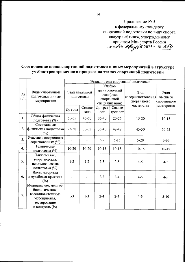 ПРИКАЗ Минспорта РФ от 14.08.2025 N 654