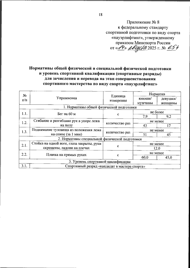 ПРИКАЗ Минспорта РФ от 14.08.2025 N 654