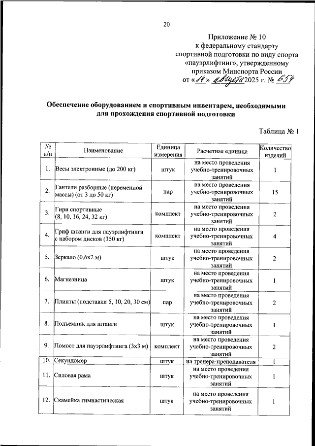 ПРИКАЗ Минспорта РФ от 14.08.2025 N 654