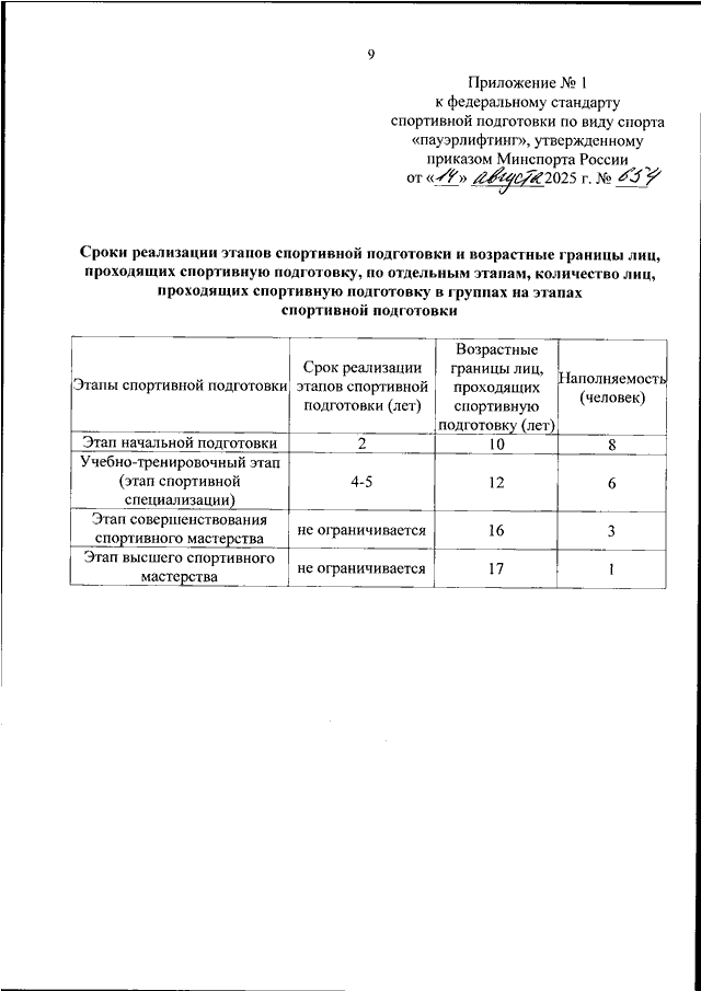 ПРИКАЗ Минспорта РФ от 14.08.2025 N 654