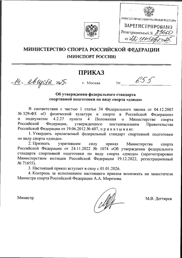 ПРИКАЗ Минспорта РФ от 14.08.2025 N 655