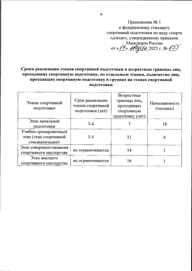 ПРИКАЗ Минспорта РФ от 14.08.2025 N 655