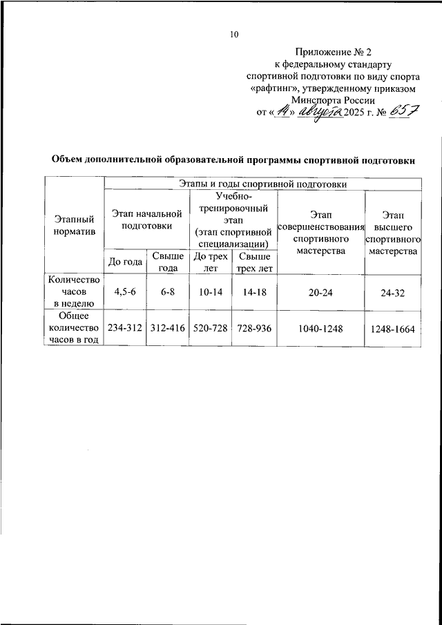 ПРИКАЗ Минспорта РФ от 14.08.2025 N 657