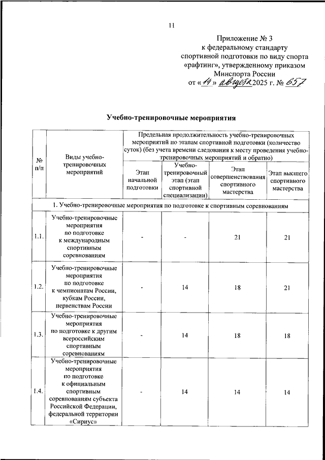 ПРИКАЗ Минспорта РФ от 14.08.2025 N 657