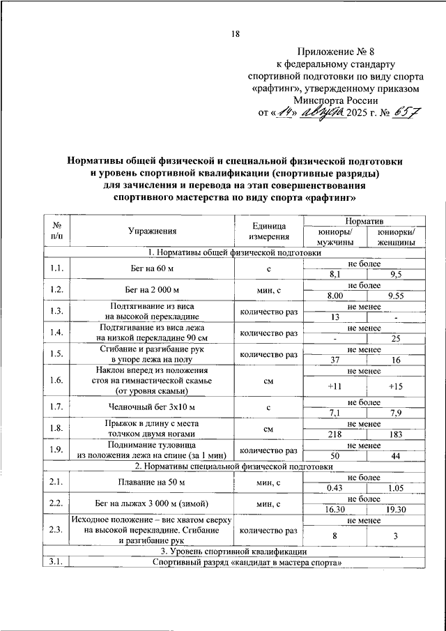 ПРИКАЗ Минспорта РФ от 14.08.2025 N 657