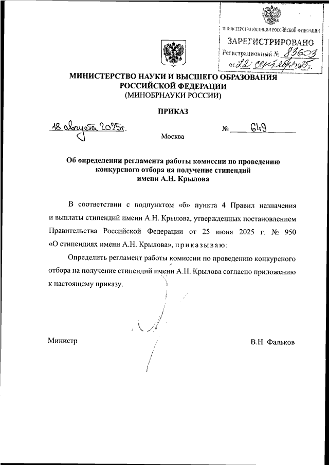 ПРИКАЗ Минобрнауки РФ от 18.08.2025 N 649