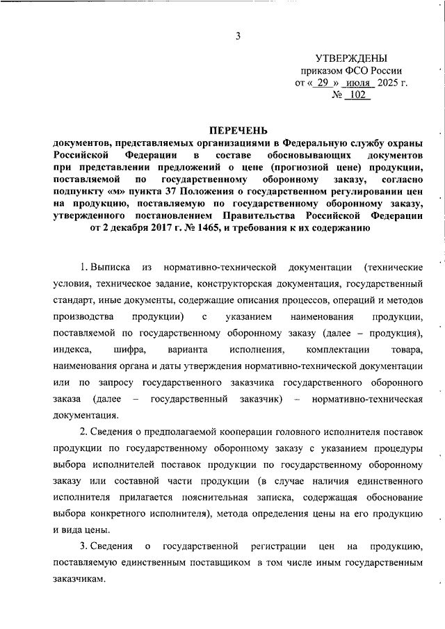 ПРИКАЗ ФСО РФ от 29.07.2025 N 102