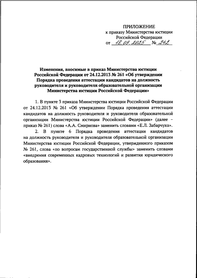 ПРИКАЗ Минюста РФ от 18.09.2025 N 242