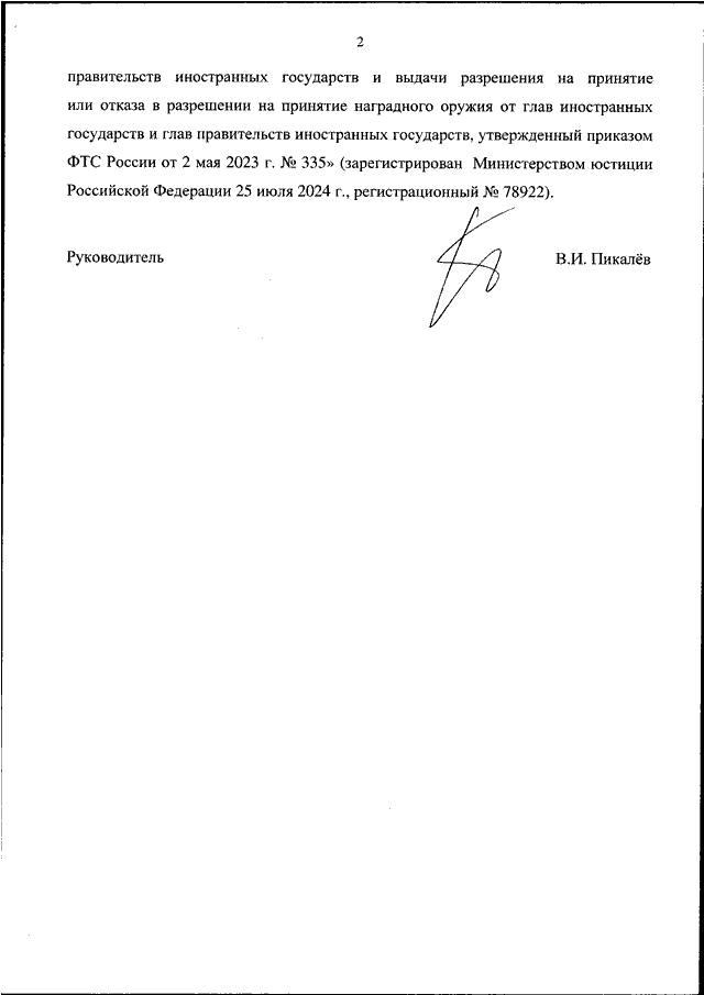 "О ПРИЗНАНИИ УТРАТИВШИМИ СИЛУ ПРИКАЗА ФТС РОССИИ ОТ 2 МАЯ 2023 Г. N 335 "О НЕКОТОРЫХ ВОПРОСАХ ПРИНЯТИЯ ДОЛЖНОСТНЫМИ ЛИЦАМИ ТАМОЖЕННЫХ ОРГАНОВ РОССИЙСКОЙ ФЕДЕРАЦИИ НАГРАДНОГО ОРУЖИЯ ОТ ГЛАВ ИНОСТРАННЫХ ГОСУДАРСТВ И ГЛАВ ПРАВИТЕЛЬСТВ ИНОСТРАННЫХ ГОСУДАРСТВ" И ВНЕСЕННОГО В НЕГО ИЗМЕНЕНИЯ"