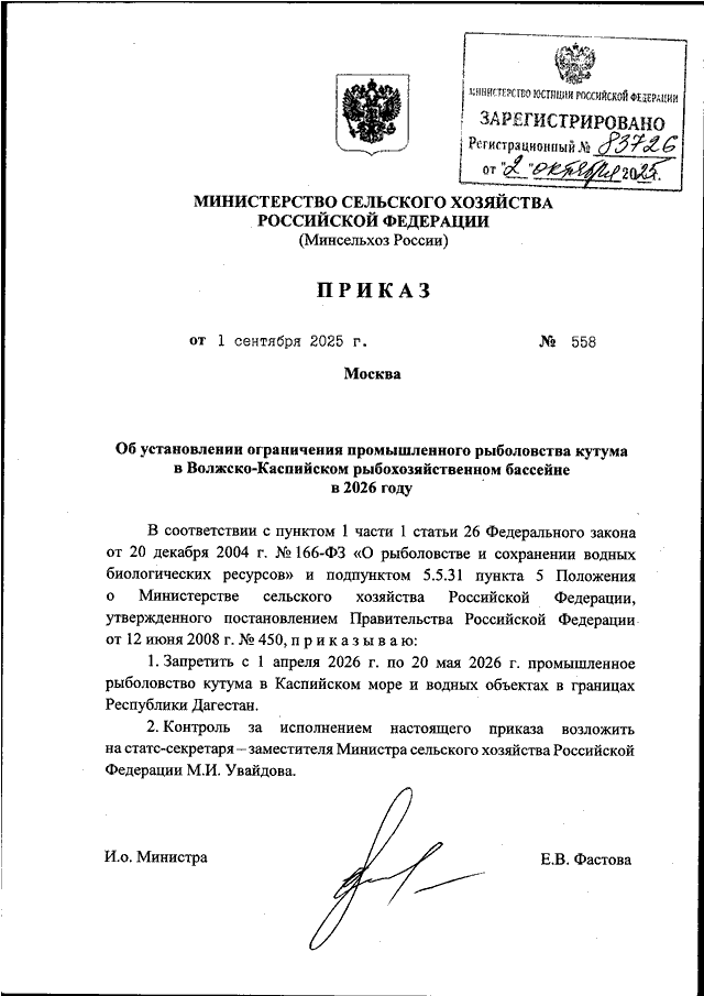 ПРИКАЗ Минсельхоза РФ от 01.09.2025 N 558