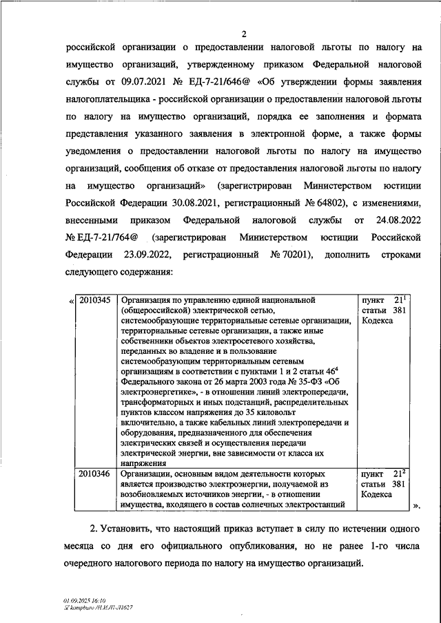 "О ВНЕСЕНИИ ИЗМЕНЕНИЙ В ПРИЛОЖЕНИЕ N 2 К ПРИКАЗУ ФНС РОССИИ ОТ 09.07.2021 N ЕД-7-21/646@"