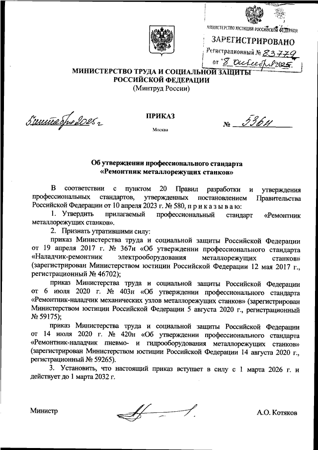 ПРИКАЗ Минтруда РФ от 05.09.2025 N 536н