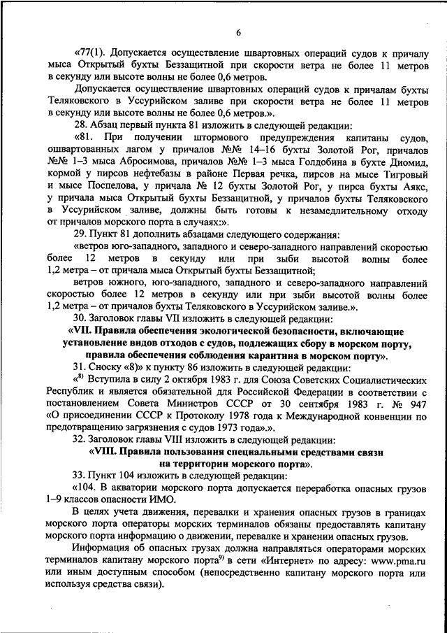 "О ВНЕСЕНИИ ИЗМЕНЕНИЙ В ОБЯЗАТЕЛЬНЫЕ ПОСТАНОВЛЕНИЯ В МОРСКОМ ПОРТУ ВЛАДИВОСТОК, УТВЕРЖДЕННЫЕ ПРИКАЗОМ МИНИСТЕРСТВА ТРАНСПОРТА РОССИЙСКОЙ ФЕДЕРАЦИИ ОТ 2 ИЮЛЯ 2013 Г. N 229"