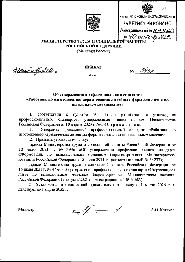 (Зарегистрировано в Минюсте РФ 10.10.2025 N 83823)