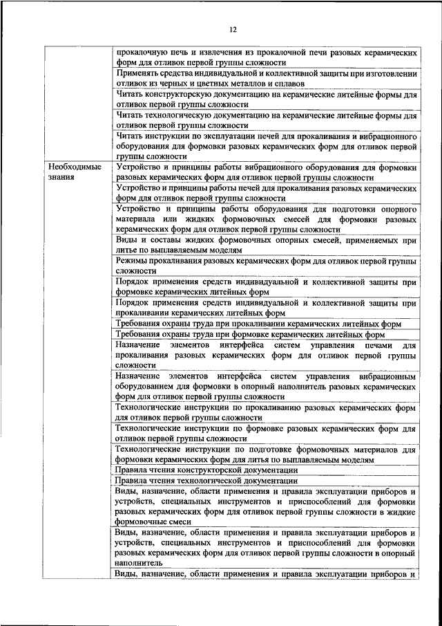 "ОБ УТВЕРЖДЕНИИ ПРОФЕССИОНАЛЬНОГО СТАНДАРТА "РАБОТНИК ПО ИЗГОТОВЛЕНИЮ КЕРАМИЧЕСКИХ ЛИТЕЙНЫХ ФОРМ ДЛЯ ЛИТЬЯ ПО ВЫПЛАВЛЯЕМЫМ МОДЕЛЯМ"
