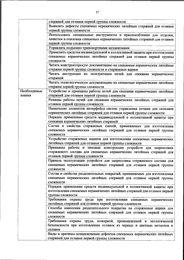 "ОБ УТВЕРЖДЕНИИ ПРОФЕССИОНАЛЬНОГО СТАНДАРТА "РАБОТНИК ПО ИЗГОТОВЛЕНИЮ КЕРАМИЧЕСКИХ ЛИТЕЙНЫХ ФОРМ ДЛЯ ЛИТЬЯ ПО ВЫПЛАВЛЯЕМЫМ МОДЕЛЯМ"