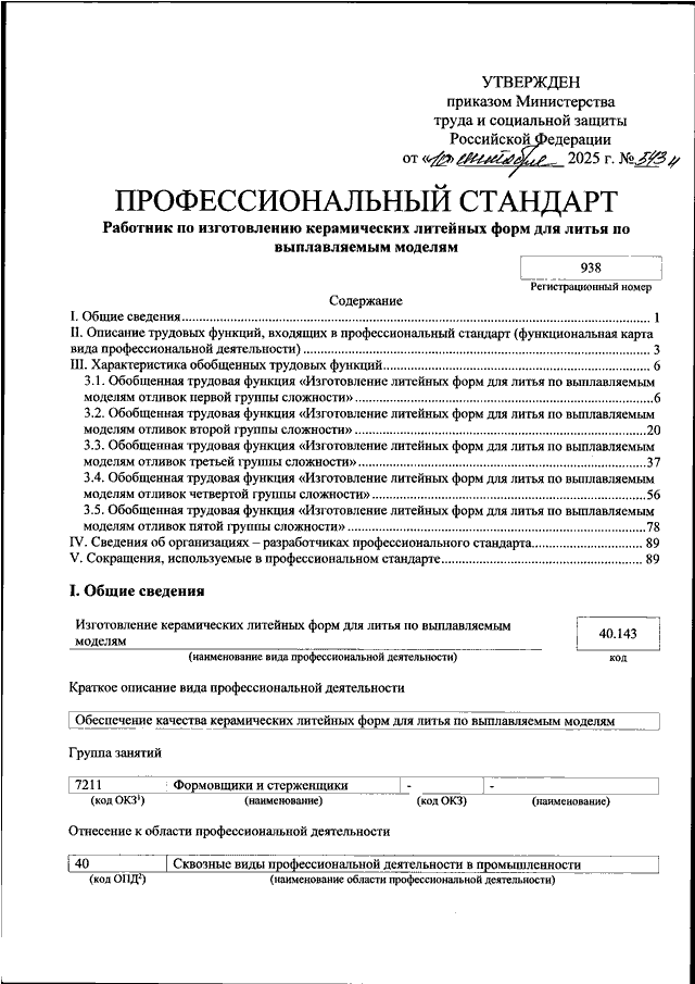 "ОБ УТВЕРЖДЕНИИ ПРОФЕССИОНАЛЬНОГО СТАНДАРТА "РАБОТНИК ПО ИЗГОТОВЛЕНИЮ КЕРАМИЧЕСКИХ ЛИТЕЙНЫХ ФОРМ ДЛЯ ЛИТЬЯ ПО ВЫПЛАВЛЯЕМЫМ МОДЕЛЯМ"