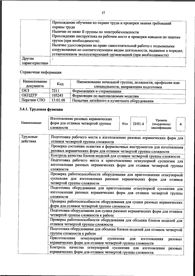 "ОБ УТВЕРЖДЕНИИ ПРОФЕССИОНАЛЬНОГО СТАНДАРТА "РАБОТНИК ПО ИЗГОТОВЛЕНИЮ КЕРАМИЧЕСКИХ ЛИТЕЙНЫХ ФОРМ ДЛЯ ЛИТЬЯ ПО ВЫПЛАВЛЯЕМЫМ МОДЕЛЯМ"