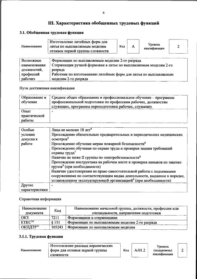 "ОБ УТВЕРЖДЕНИИ ПРОФЕССИОНАЛЬНОГО СТАНДАРТА "РАБОТНИК ПО ИЗГОТОВЛЕНИЮ КЕРАМИЧЕСКИХ ЛИТЕЙНЫХ ФОРМ ДЛЯ ЛИТЬЯ ПО ВЫПЛАВЛЯЕМЫМ МОДЕЛЯМ"