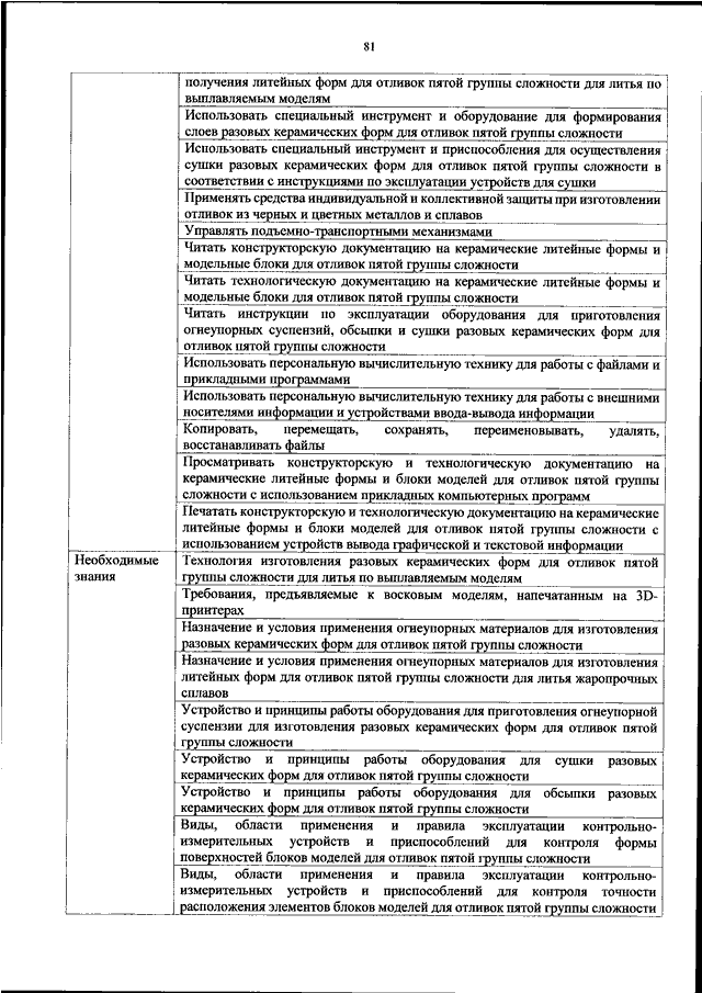 "ОБ УТВЕРЖДЕНИИ ПРОФЕССИОНАЛЬНОГО СТАНДАРТА "РАБОТНИК ПО ИЗГОТОВЛЕНИЮ КЕРАМИЧЕСКИХ ЛИТЕЙНЫХ ФОРМ ДЛЯ ЛИТЬЯ ПО ВЫПЛАВЛЯЕМЫМ МОДЕЛЯМ"