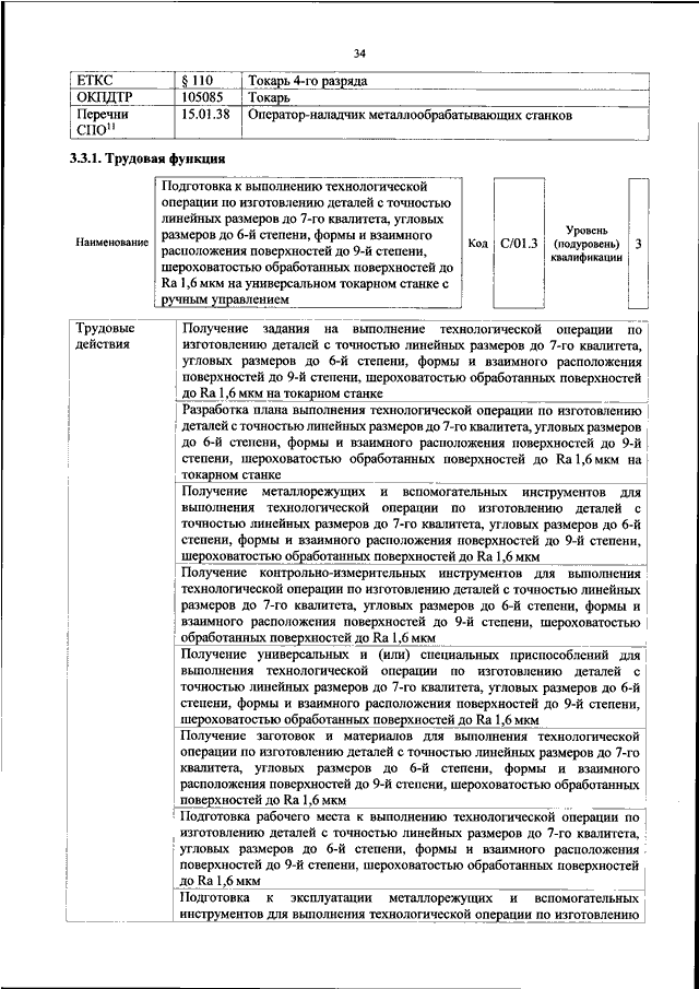 "ОБ УТВЕРЖДЕНИИ ПРОФЕССИОНАЛЬНОГО СТАНДАРТА "ТОКАРЬ"