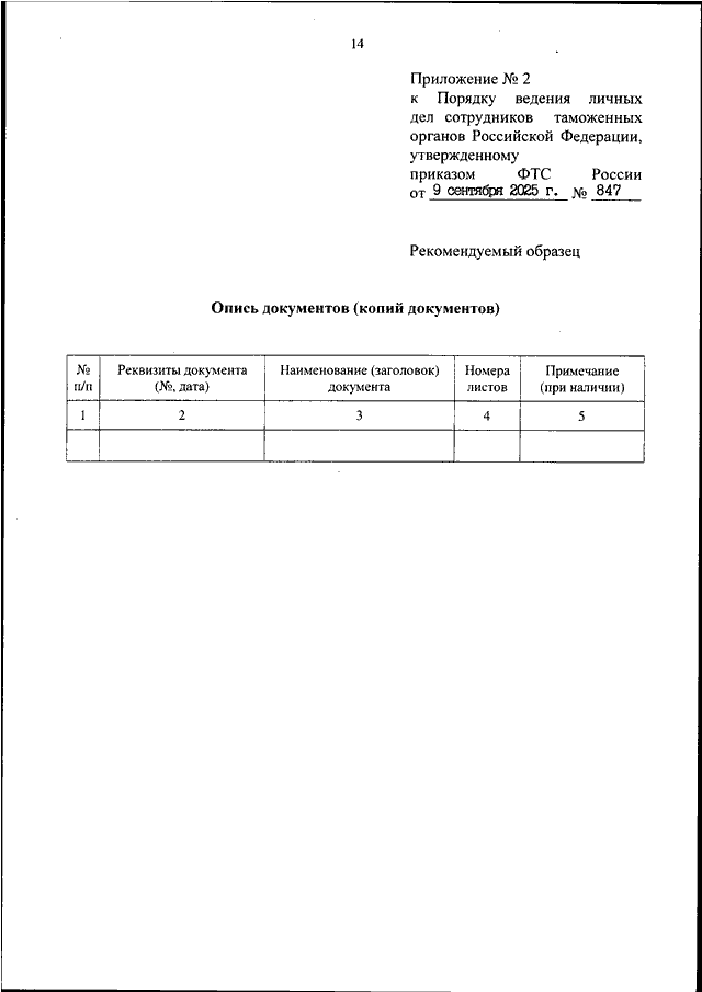 ПРИКАЗ ФТС РФ от 09.09.2025 N 847
