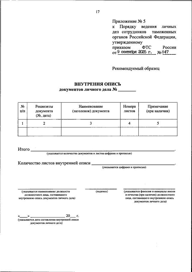 ПРИКАЗ ФТС РФ от 09.09.2025 N 847