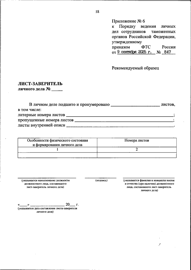 ПРИКАЗ ФТС РФ от 09.09.2025 N 847