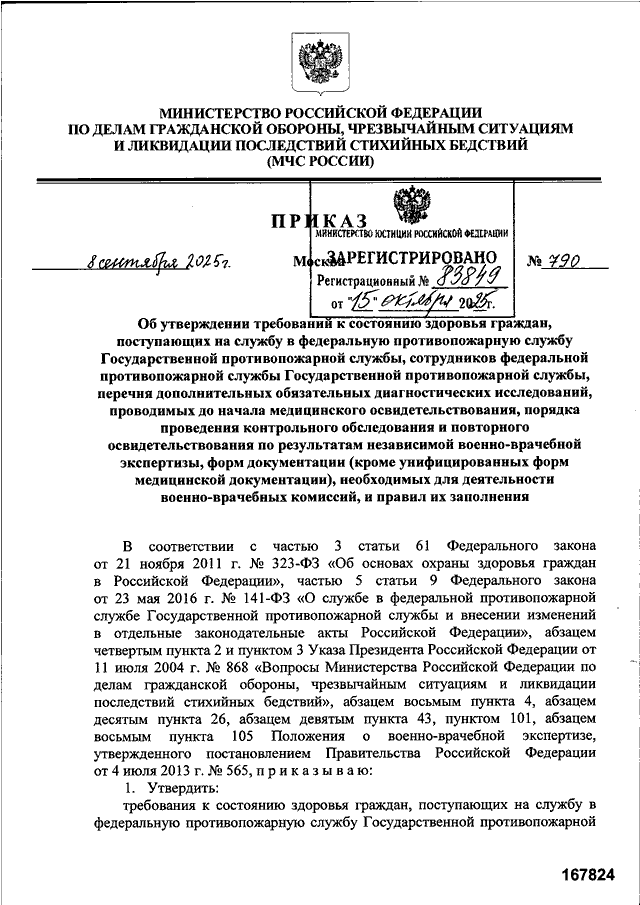 ПРИКАЗ МЧС РФ от 08.09.2025 N 790