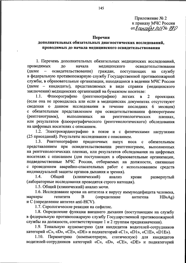 "ОБ УТВЕРЖДЕНИИ ТРЕБОВАНИЙ К СОСТОЯНИЮ ЗДОРОВЬЯ ГРАЖДАН, ПОСТУПАЮЩИХ НА СЛУЖБУ В ФЕДЕРАЛЬНУЮ ПРОТИВОПОЖАРНУЮ СЛУЖБУ ГОСУДАРСТВЕННОЙ ПРОТИВОПОЖАРНОЙ СЛУЖБЫ, СОТРУДНИКОВ ФЕДЕРАЛЬНОЙ ПРОТИВОПОЖАРНОЙ СЛУЖБЫ ГОСУДАРСТВЕННОЙ ПРОТИВОПОЖАРНОЙ СЛУЖБЫ, ПЕРЕЧНЯ ДОПОЛНИТЕЛЬНЫХ ОБЯЗАТЕЛЬНЫХ ДИАГНОСТИЧЕСКИХ ИССЛЕДОВАНИЙ, ПРОВОДИМЫХ ДО НАЧАЛА МЕДИЦИНСКОГО ОСВИДЕТЕЛЬСТВОВАНИЯ, ПОРЯДКА ПРОВЕДЕНИЯ КОНТРОЛЬНОГО ОБСЛЕДОВАНИЯ И ПОВТОРНОГО ОСВИДЕТЕЛЬСТВОВАНИЯ ПО РЕЗУЛЬТАТАМ НЕЗАВИСИМОЙ ВОЕННО - ВРАЧЕБНОЙ ЭКСПЕРТИЗЫ, ФОРМ ДОКУМЕНТАЦИИ (КРОМЕ УНИФИЦИРОВАННЫХ ФОРМ МЕДИЦИНСКОЙ ДОКУМЕНТАЦИИ), НЕОБХОДИМЫХ ДЛЯ ДЕЯТЕЛЬНОСТИ ВОЕННО - ВРАЧЕБНЫХ КОМИССИЙ, И ПРАВИЛ ИХ ЗАПОЛНЕНИЯ"