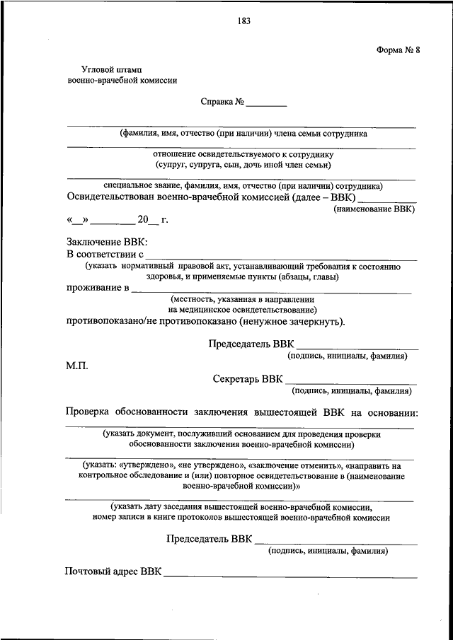 "ОБ УТВЕРЖДЕНИИ ТРЕБОВАНИЙ К СОСТОЯНИЮ ЗДОРОВЬЯ ГРАЖДАН, ПОСТУПАЮЩИХ НА СЛУЖБУ В ФЕДЕРАЛЬНУЮ ПРОТИВОПОЖАРНУЮ СЛУЖБУ ГОСУДАРСТВЕННОЙ ПРОТИВОПОЖАРНОЙ СЛУЖБЫ, СОТРУДНИКОВ ФЕДЕРАЛЬНОЙ ПРОТИВОПОЖАРНОЙ СЛУЖБЫ ГОСУДАРСТВЕННОЙ ПРОТИВОПОЖАРНОЙ СЛУЖБЫ, ПЕРЕЧНЯ ДОПОЛНИТЕЛЬНЫХ ОБЯЗАТЕЛЬНЫХ ДИАГНОСТИЧЕСКИХ ИССЛЕДОВАНИЙ, ПРОВОДИМЫХ ДО НАЧАЛА МЕДИЦИНСКОГО ОСВИДЕТЕЛЬСТВОВАНИЯ, ПОРЯДКА ПРОВЕДЕНИЯ КОНТРОЛЬНОГО ОБСЛЕДОВАНИЯ И ПОВТОРНОГО ОСВИДЕТЕЛЬСТВОВАНИЯ ПО РЕЗУЛЬТАТАМ НЕЗАВИСИМОЙ ВОЕННО - ВРАЧЕБНОЙ ЭКСПЕРТИЗЫ, ФОРМ ДОКУМЕНТАЦИИ (КРОМЕ УНИФИЦИРОВАННЫХ ФОРМ МЕДИЦИНСКОЙ ДОКУМЕНТАЦИИ), НЕОБХОДИМЫХ ДЛЯ ДЕЯТЕЛЬНОСТИ ВОЕННО - ВРАЧЕБНЫХ КОМИССИЙ, И ПРАВИЛ ИХ ЗАПОЛНЕНИЯ"