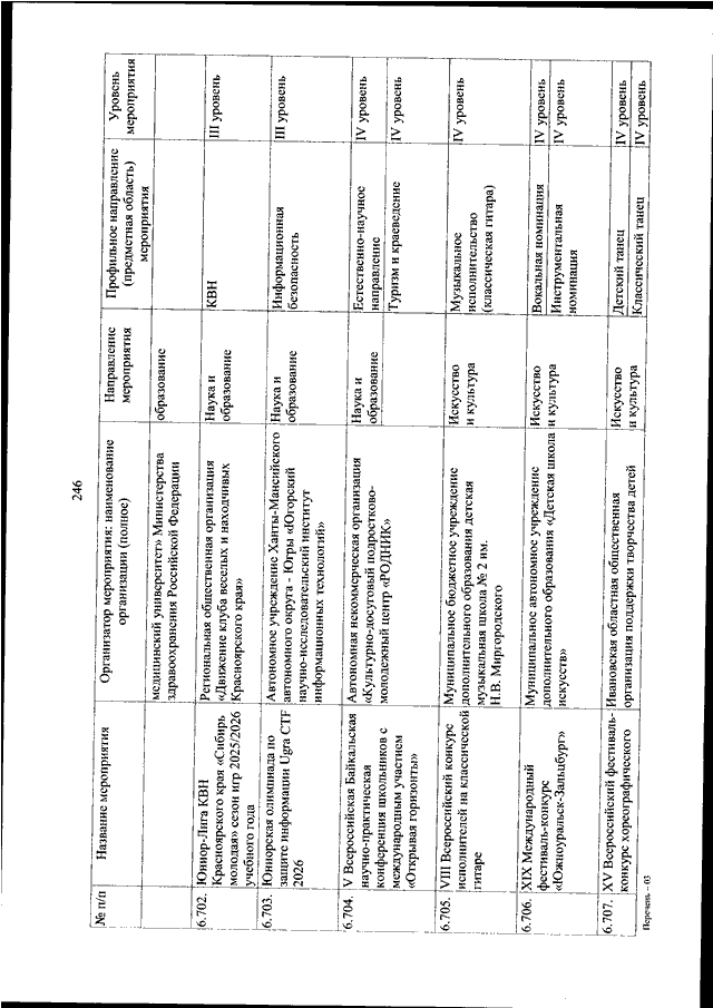 "ОБ УТВЕРЖДЕНИИ ПЕРЕЧНЯ ОЛИМПИАД И ИНЫХ ИНТЕЛЛЕКТУАЛЬНЫХ И (ИЛИ) ТВОРЧЕСКИХ КОНКУРСОВ, МЕРОПРИЯТИЙ, НАПРАВЛЕННЫХ НА РАЗВИТИЕ ИНТЕЛЛЕКТУАЛЬНЫХ И ТВОРЧЕСКИХ СПОСОБНОСТЕЙ, СПОСОБНОСТЕЙ К ЗАНЯТИЯМ ФИЗИЧЕСКОЙ КУЛЬТУРОЙ И СПОРТОМ, ИНТЕРЕСА К НАУЧНОЙ (НАУЧНО - ИССЛЕДОВАТЕЛЬСКОЙ), ИНЖЕНЕРНО - ТЕХНИЧЕСКОЙ, ИЗОБРЕТАТЕЛЬСКОЙ, ТВОРЧЕСКОЙ, ФИЗКУЛЬТУРНО - СПОРТИВНОЙ ДЕЯТЕЛЬНОСТИ, А ТАКЖЕ НА ПРОПАГАНДУ НАУЧНЫХ ЗНАНИЙ, ТВОРЧЕСКИХ И СПОРТИВНЫХ ДОСТИЖЕНИЙ, НА 2025/2Б УЧЕБНЫЙ ГОД"