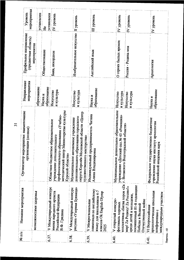 "ОБ УТВЕРЖДЕНИИ ПЕРЕЧНЯ ОЛИМПИАД И ИНЫХ ИНТЕЛЛЕКТУАЛЬНЫХ И (ИЛИ) ТВОРЧЕСКИХ КОНКУРСОВ, МЕРОПРИЯТИЙ, НАПРАВЛЕННЫХ НА РАЗВИТИЕ ИНТЕЛЛЕКТУАЛЬНЫХ И ТВОРЧЕСКИХ СПОСОБНОСТЕЙ, СПОСОБНОСТЕЙ К ЗАНЯТИЯМ ФИЗИЧЕСКОЙ КУЛЬТУРОЙ И СПОРТОМ, ИНТЕРЕСА К НАУЧНОЙ (НАУЧНО - ИССЛЕДОВАТЕЛЬСКОЙ), ИНЖЕНЕРНО - ТЕХНИЧЕСКОЙ, ИЗОБРЕТАТЕЛЬСКОЙ, ТВОРЧЕСКОЙ, ФИЗКУЛЬТУРНО - СПОРТИВНОЙ ДЕЯТЕЛЬНОСТИ, А ТАКЖЕ НА ПРОПАГАНДУ НАУЧНЫХ ЗНАНИЙ, ТВОРЧЕСКИХ И СПОРТИВНЫХ ДОСТИЖЕНИЙ, НА 2025/2Б УЧЕБНЫЙ ГОД"