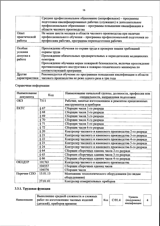 "ОБ УТВЕРЖДЕНИИ ПРОФЕССИОНАЛЬНОГО СТАНДАРТА "РАБОТНИК ЧАСОВОГО ПРОИЗВОДСТВА"