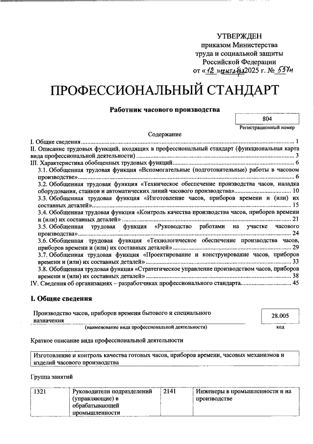 "ОБ УТВЕРЖДЕНИИ ПРОФЕССИОНАЛЬНОГО СТАНДАРТА "РАБОТНИК ЧАСОВОГО ПРОИЗВОДСТВА"