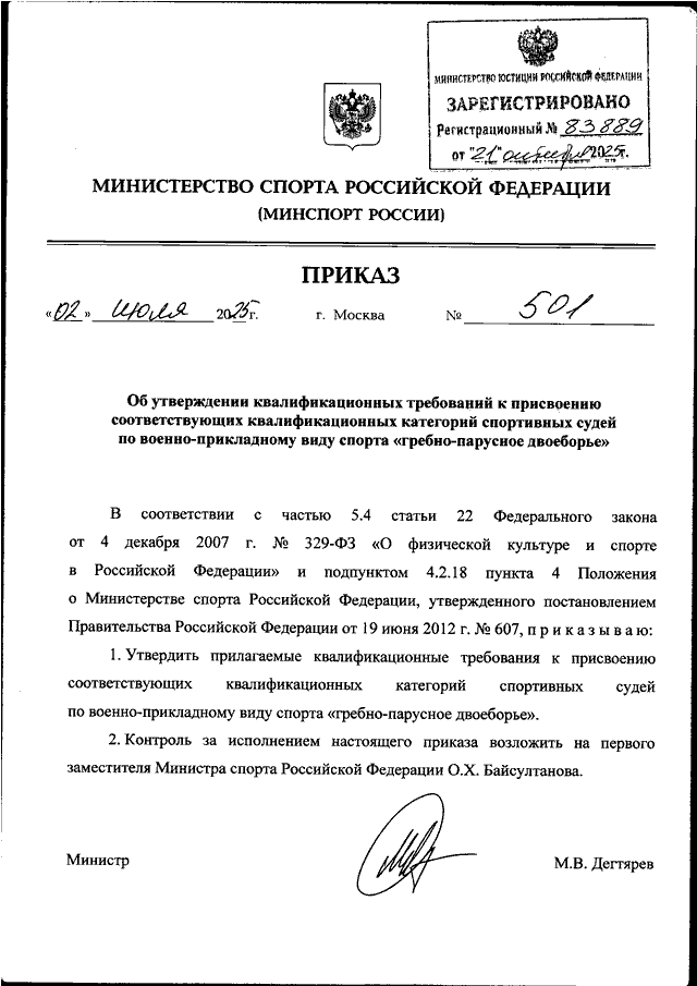 ПРИКАЗ Минспорта РФ от 02.07.2025 N 501