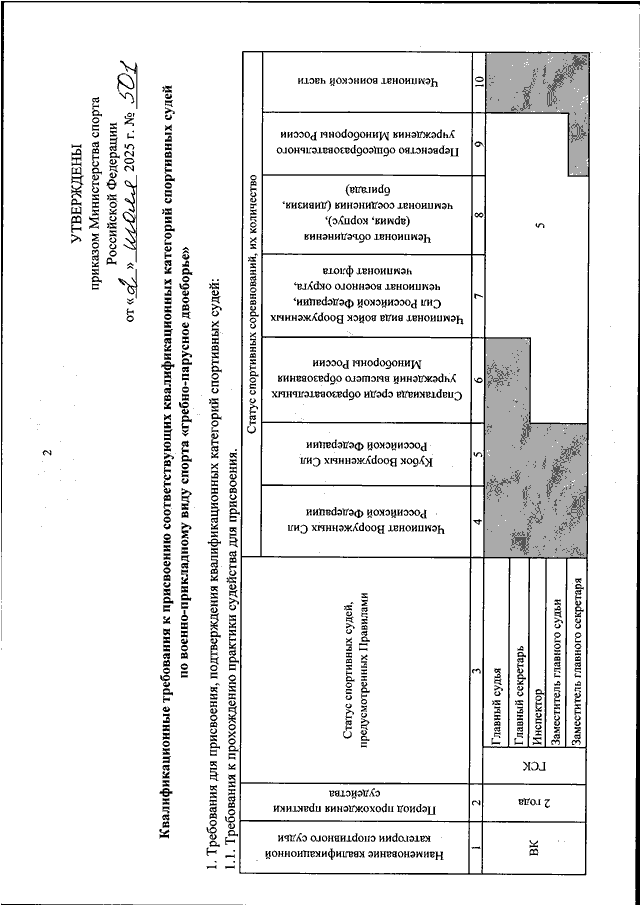 "ОБ УТВЕРЖДЕНИИ КВАЛИФИКАЦИОННЫХ ТРЕБОВАНИЙ К ПРИСВОЕНИЮ СООТВЕТСТВУЮЩИХ КВАЛИФИКАЦИОННЫХ КАТЕГОРИЙ СПОРТИВНЫХ СУДЕЙ ПО ВОЕННО - ПРИКЛАДНОМУ ВИДУ СПОРТА "ГРЕБНО - ПАРУСНОЕ ДВОЕБОРЬЕ"