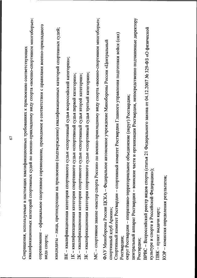 "ОБ УТВЕРЖДЕНИИ КВАЛИФИКАЦИОННЫХ ТРЕБОВАНИЙ К ПРИСВОЕНИЮ СООТВЕТСТВУЮЩИХ КВАЛИФИКАЦИОННЫХ КАТЕГОРИЙ СПОРТИВНЫХ СУДЕЙ ПО ВОЕННО - ПРИКЛАДНОМУ ВИДУ СПОРТА ВОЕННО - СПОРТИВНОЕ МНОГОБОРЬЕ"