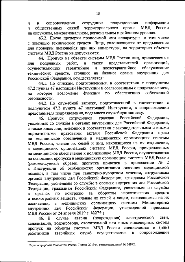 "ОБ УСТАНОВЛЕНИИ ПРОПУСКНОГО И ВНУТРИОБЪЕКТОВОГО РЕЖИМОВ НА ОБЪЕКТАХ СИСТЕМЫ МВД РОССИИ"