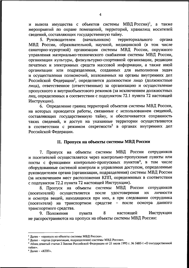 "ОБ УСТАНОВЛЕНИИ ПРОПУСКНОГО И ВНУТРИОБЪЕКТОВОГО РЕЖИМОВ НА ОБЪЕКТАХ СИСТЕМЫ МВД РОССИИ"