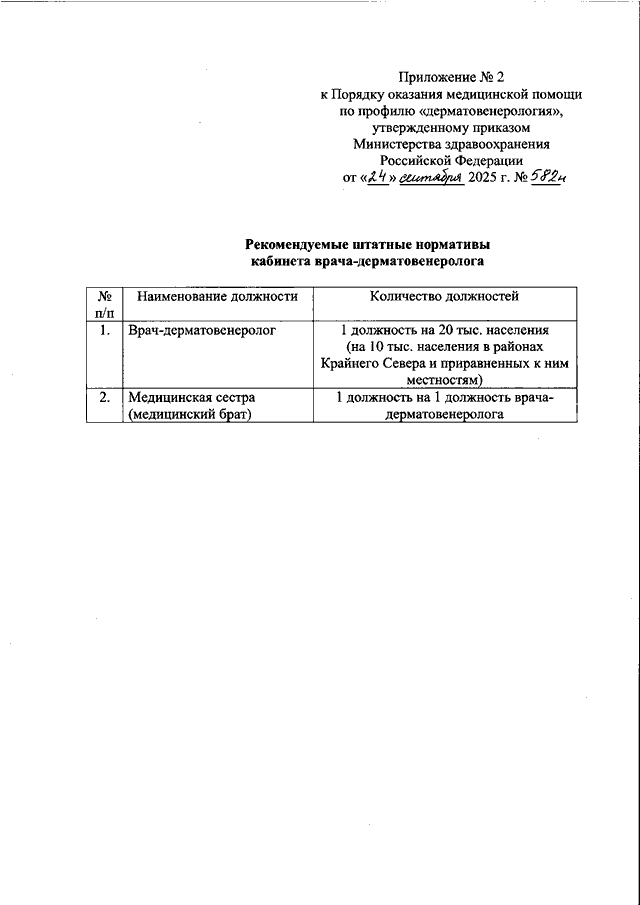 ПРИКАЗ Минздрава РФ от 24.09.2025 N 582н
