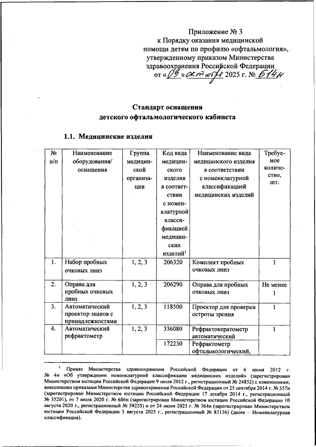 ПРИКАЗ Минздрава РФ от 09.10.2025 N 614н