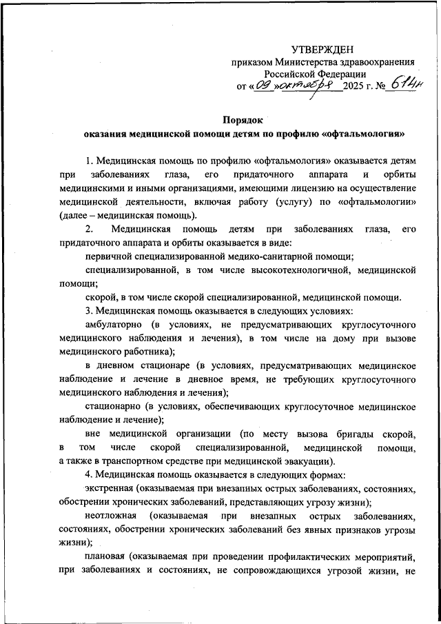 ПРИКАЗ Минздрава РФ от 09.10.2025 N 614н
