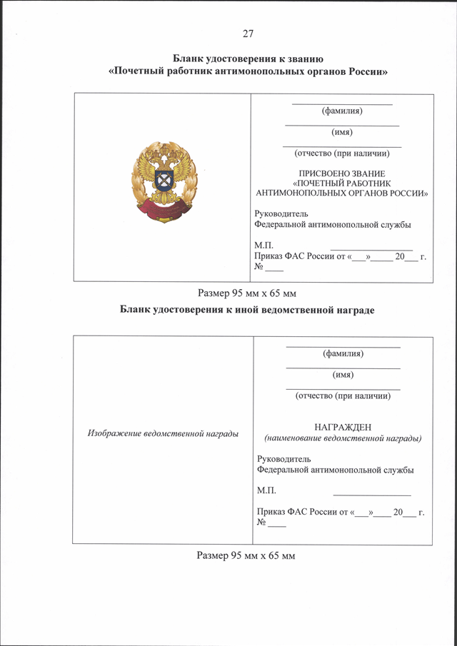 "О ВЕДОМСТВЕННЫХ НАГРАДАХ ФЕДЕРАЛЬНОЙ АНТИМОНОПОЛЬНОЙ СЛУЖБЫ"