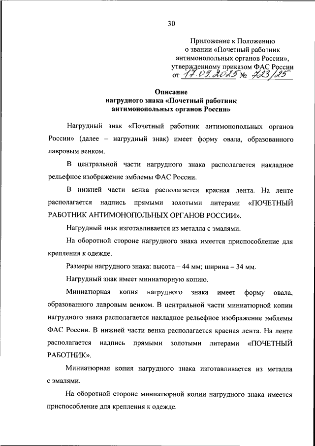 ПРИКАЗ Федеральной антимонопольной службы от 17.09.2025 N 723/25