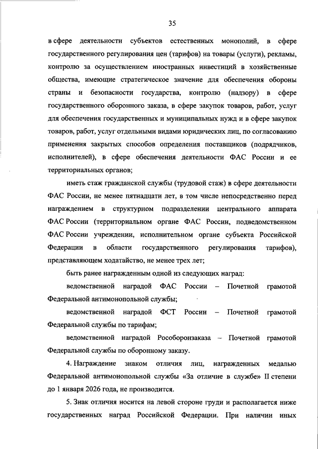 "О ВЕДОМСТВЕННЫХ НАГРАДАХ ФЕДЕРАЛЬНОЙ АНТИМОНОПОЛЬНОЙ СЛУЖБЫ"