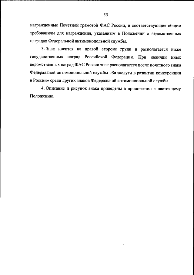 "О ВЕДОМСТВЕННЫХ НАГРАДАХ ФЕДЕРАЛЬНОЙ АНТИМОНОПОЛЬНОЙ СЛУЖБЫ"