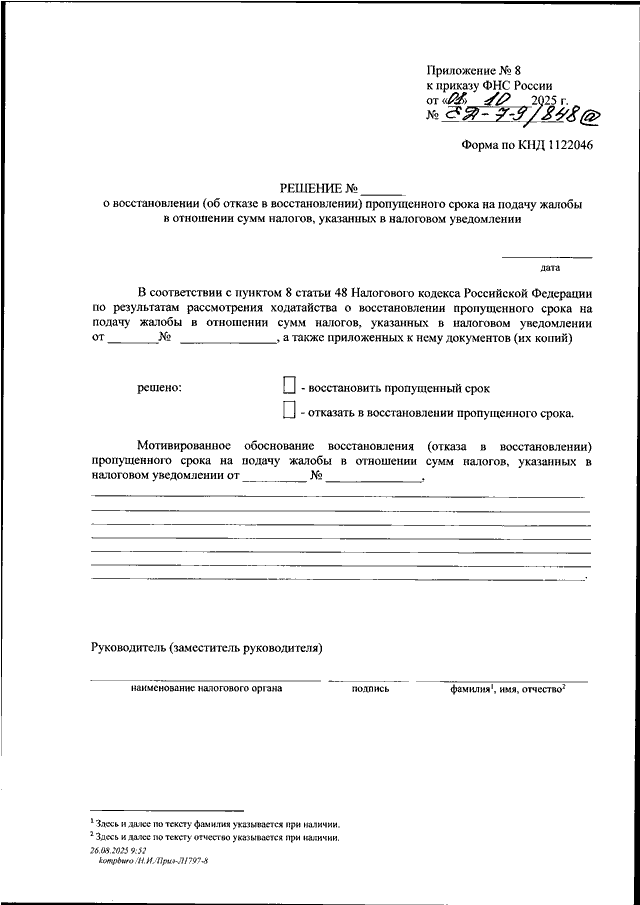 ПРИКАЗ ФНС РФ от 01.10.2025 N ЕД-7-9/848@